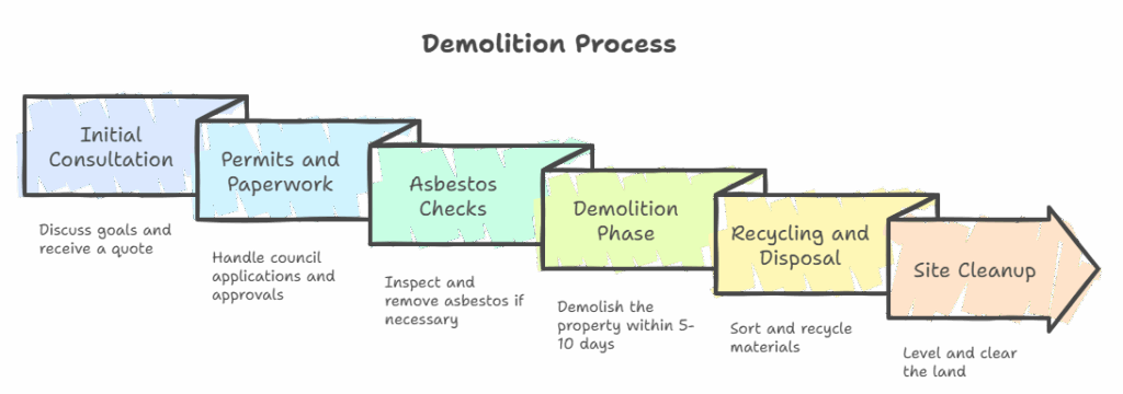 - Asbestos Checks – If your property is older, a licensed professional will inspect and safely remove any asbestos before demolition begins.